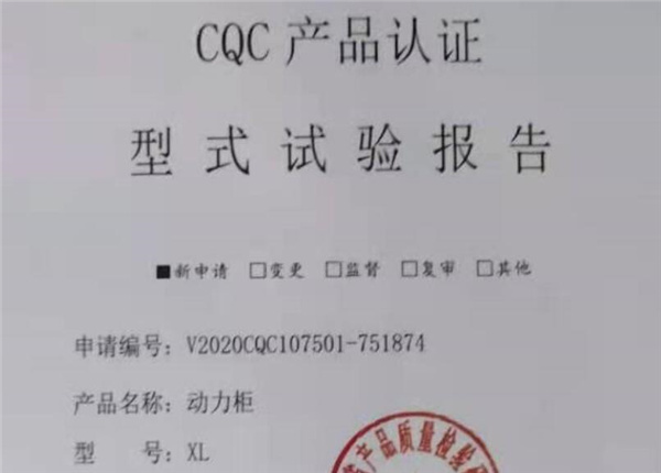 檢測名稱:XL動力配電柜產品認證資質