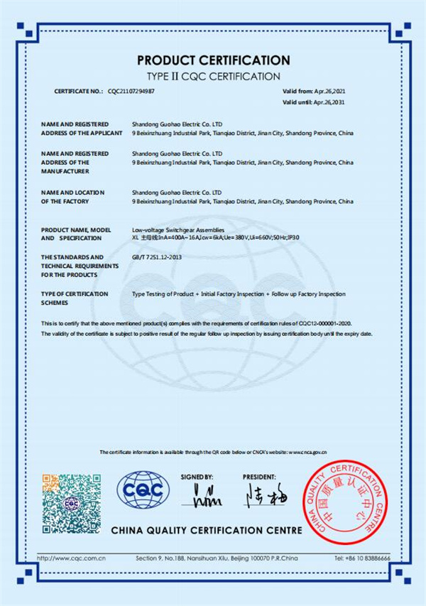認證公司:山東國豪電氣有限公司(山東省濟南市天橋區北辛莊工業園 9 號)